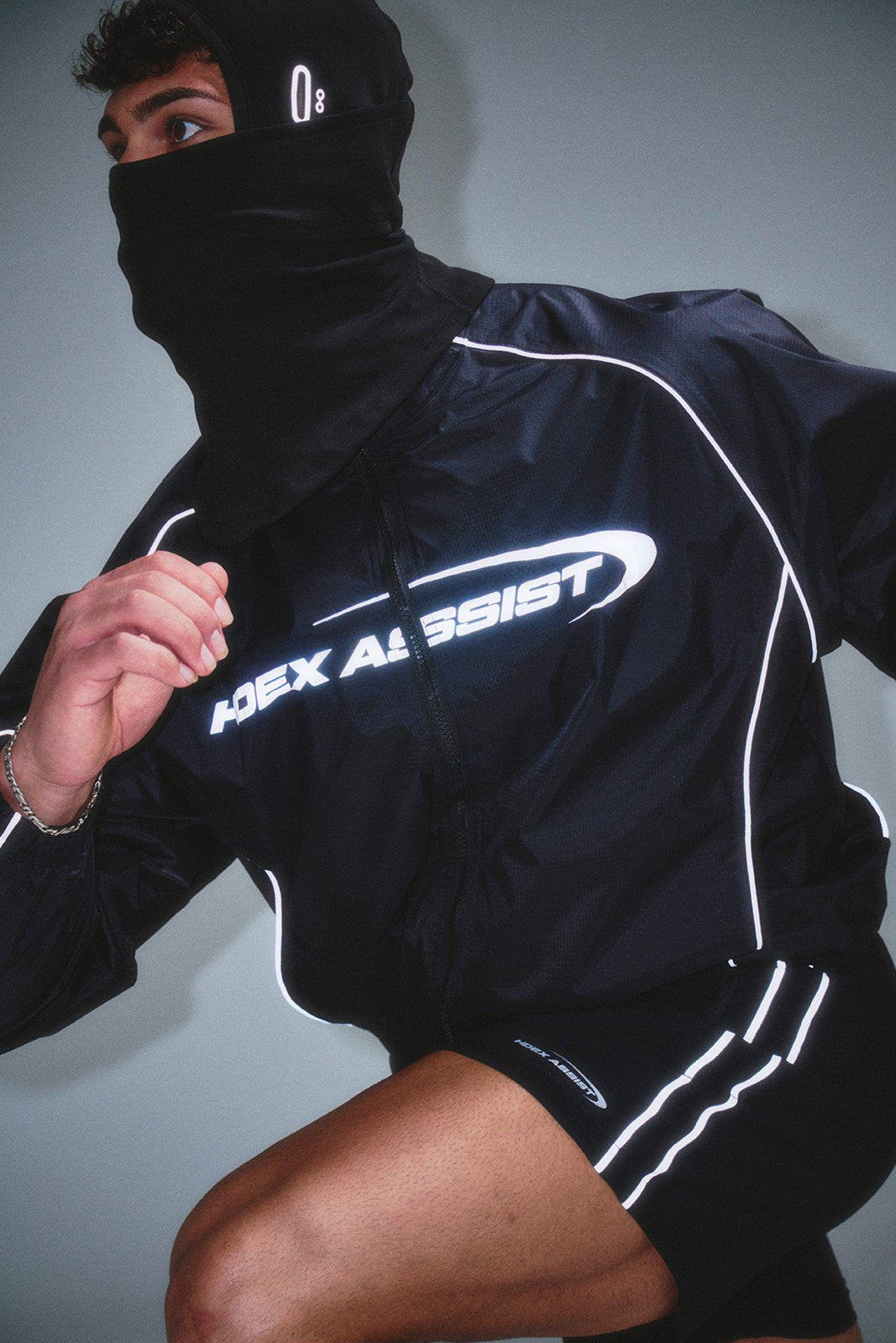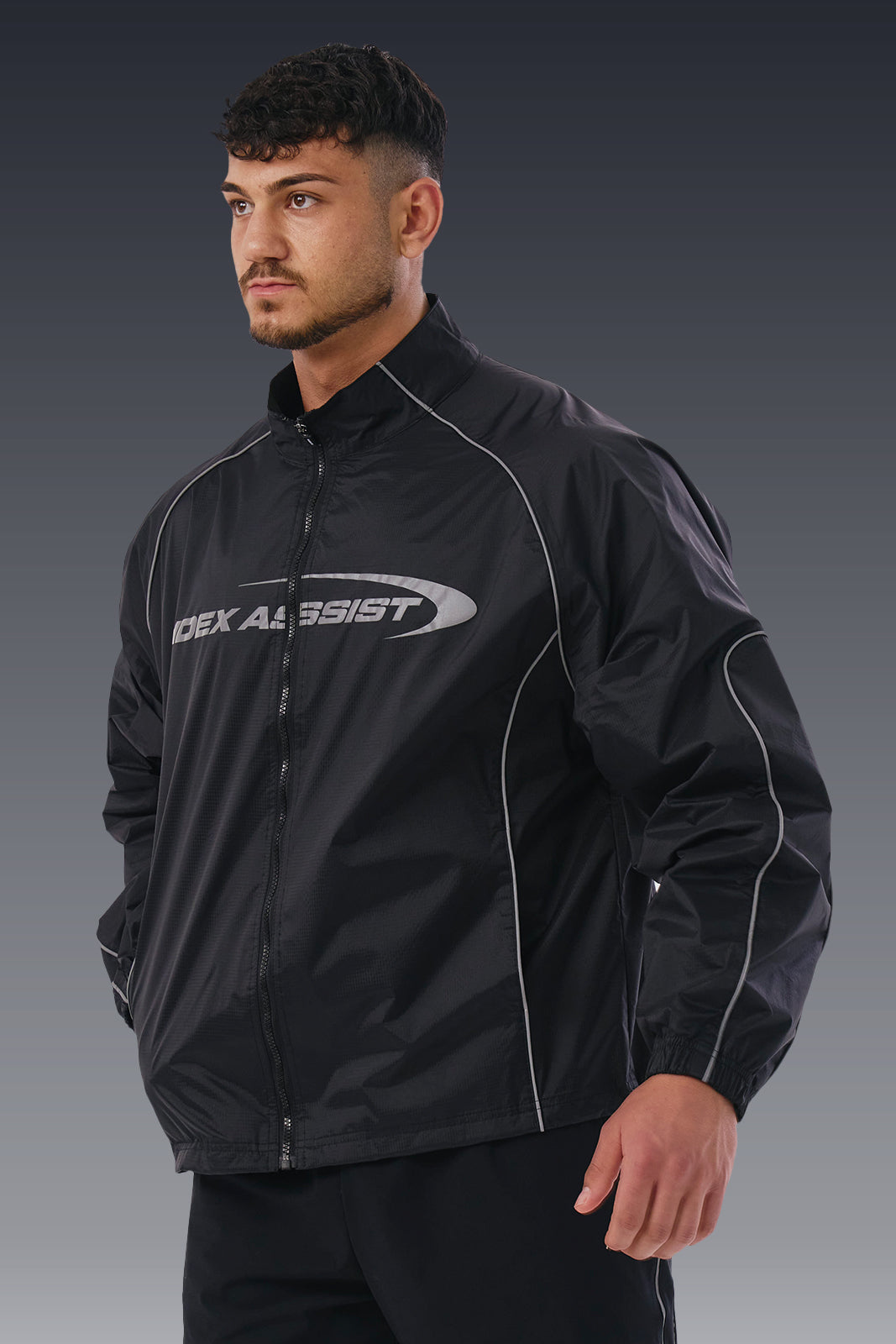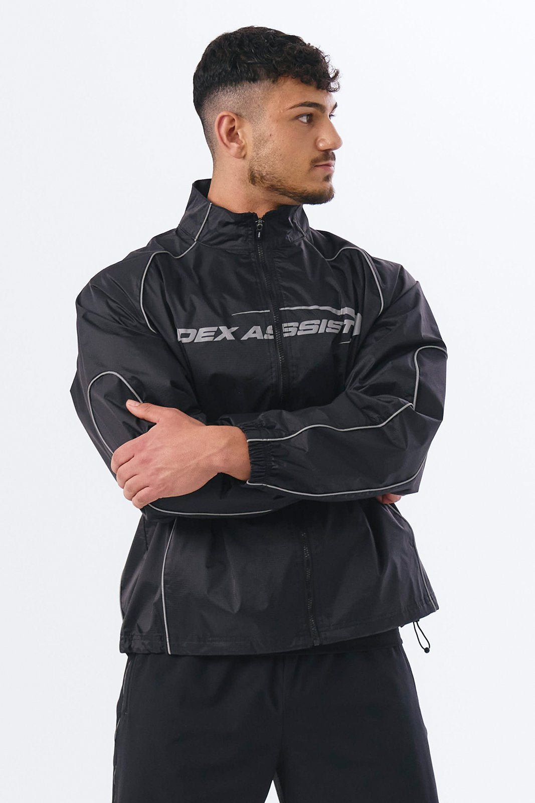 Assist 反光运动夹克防风防水运动上衣 (黑色)